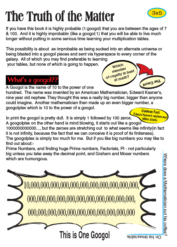 There are instructions for wizards and magicians, and challenges for the truly gifted mathematicians, there is the '!WOW!' I didn't know that' factor (for teachers and parents as well as children), and lots of jokes.